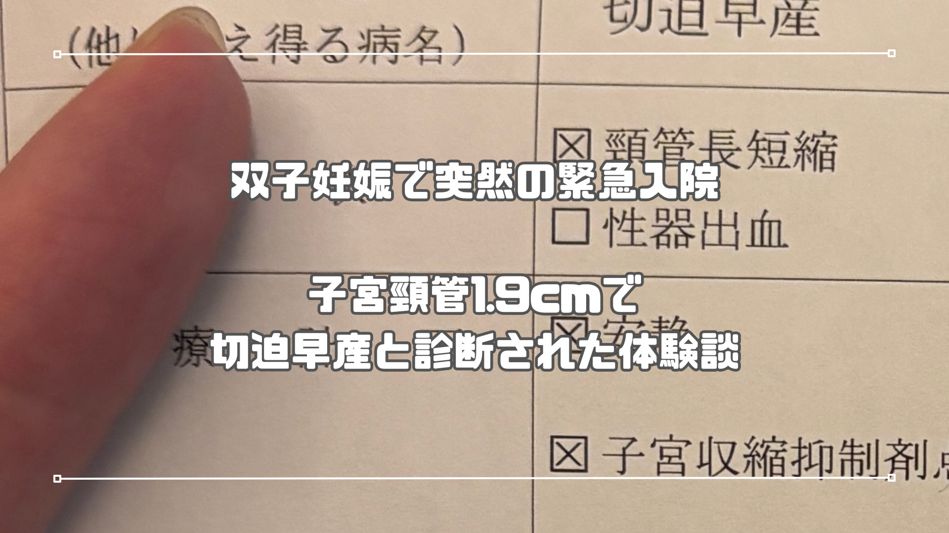 今回は、双子妊娠中に子宮頸管1.9cmで切迫早産と診断され、約2か月の入院生活が始まった体験談をお話しします。