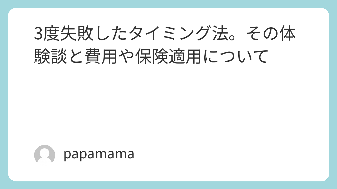 本記事は「3度失敗したタイミング法 その体験談と費用や保険適用について」について書きました。